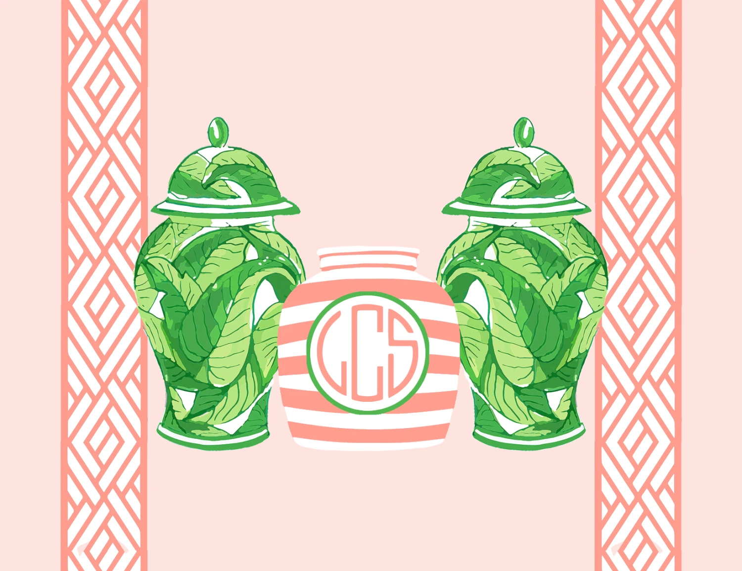 Send the happiest thank yous ever with these Banana Leaf Ginger Jar personalized folded note cards. Available in a set of 10, these 5.5″ x 4″ folded note cards come with white envelopes.
