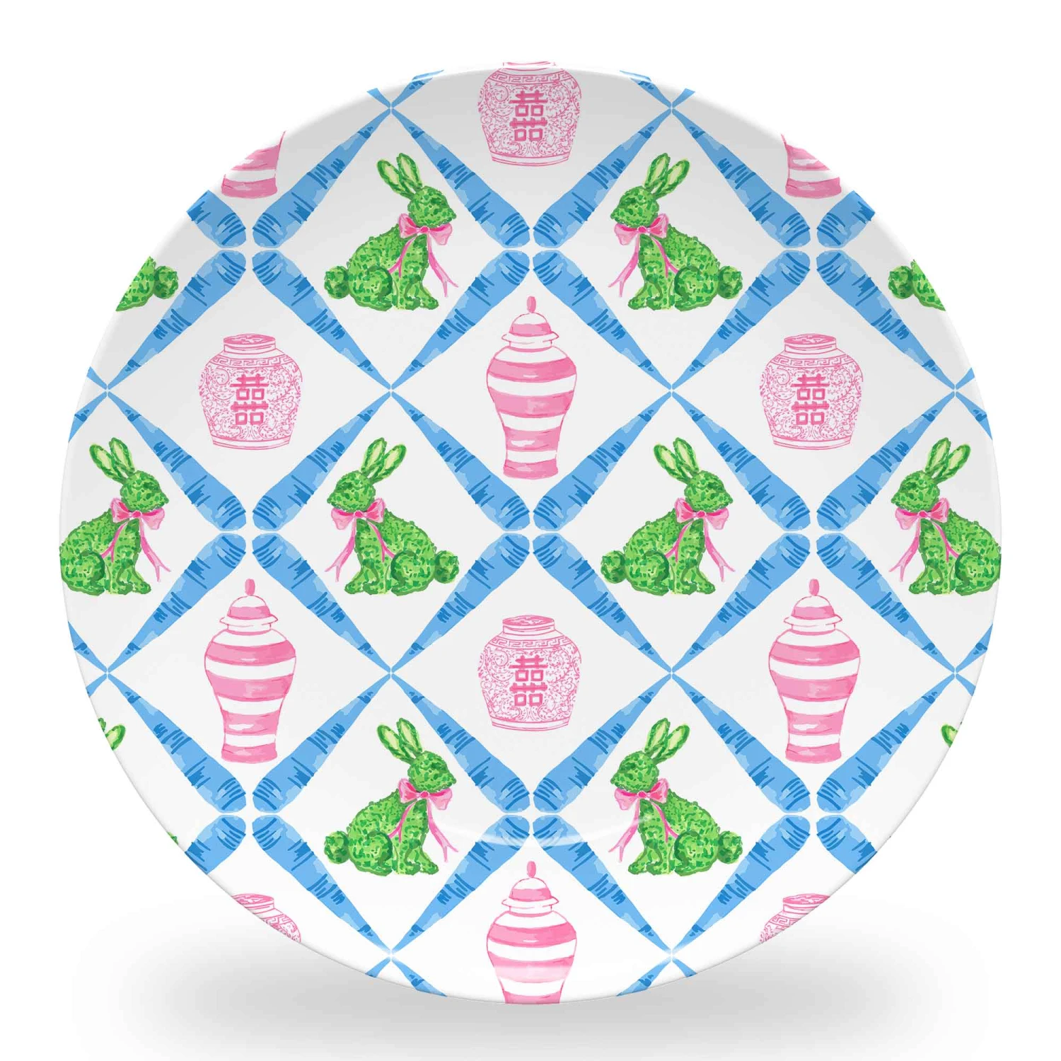 Serve your guests from these fabulous personalized melamine plates. Plates come in a set of (4) measure 10″ dia.and are dishwasher safe, non-toxic, BPA free. Do not use in microwave.
