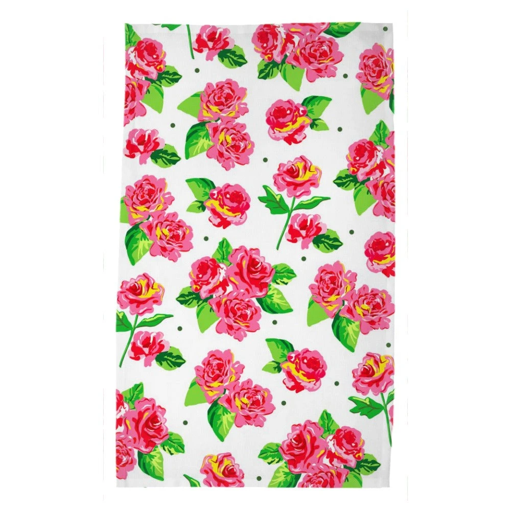 Set of (2) poly twill tea towels. Tea towels measure 18″x30″ and are hemmed along all (4) sides.Â