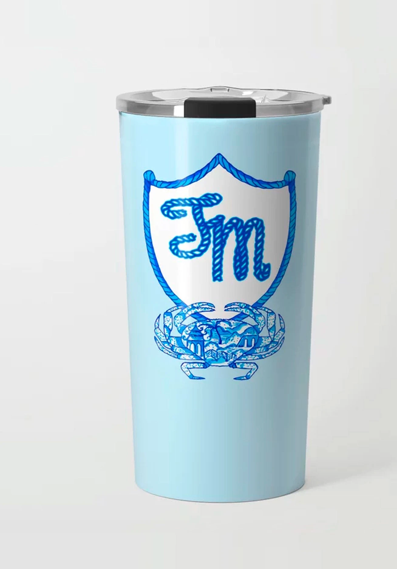 Start off your morning with the happiest travel tumbler in the exclusive Chinois Crab Crest print.Ā Lightweight double wall, stainless steel with clear plastic lid, this mugĀ is 20 oz and measures 3.5ā diameter x 6.75ā high.Ā Dishwasher safe.