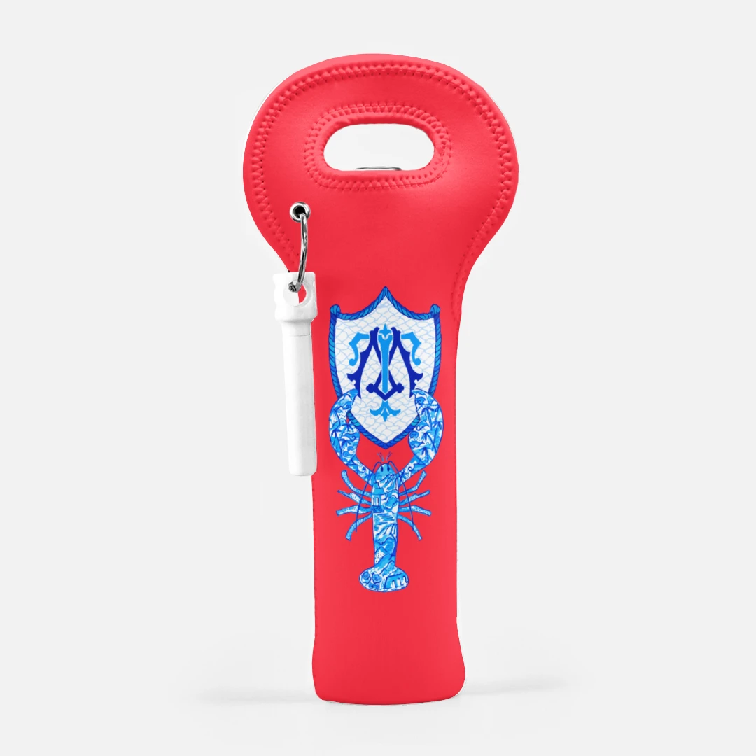 Whether it be a hostess gift or carrying your wine to the boat, this personalized Chinois Lobster wine carrier with cork screw is sure to make an impression. Made of 100% Neoprene material, this bag fits (1) 750ml wine bottle.