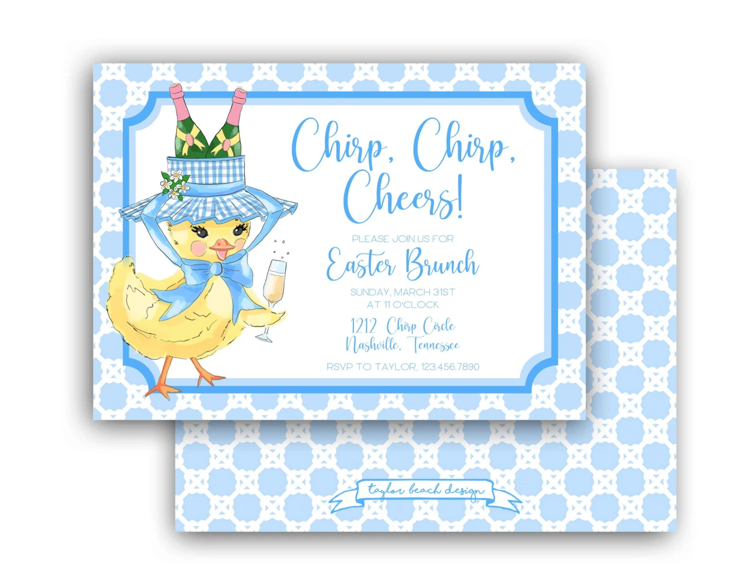 5″x7″ matte finish, flat cards with white envelopes. Backside of invitation is as shown.