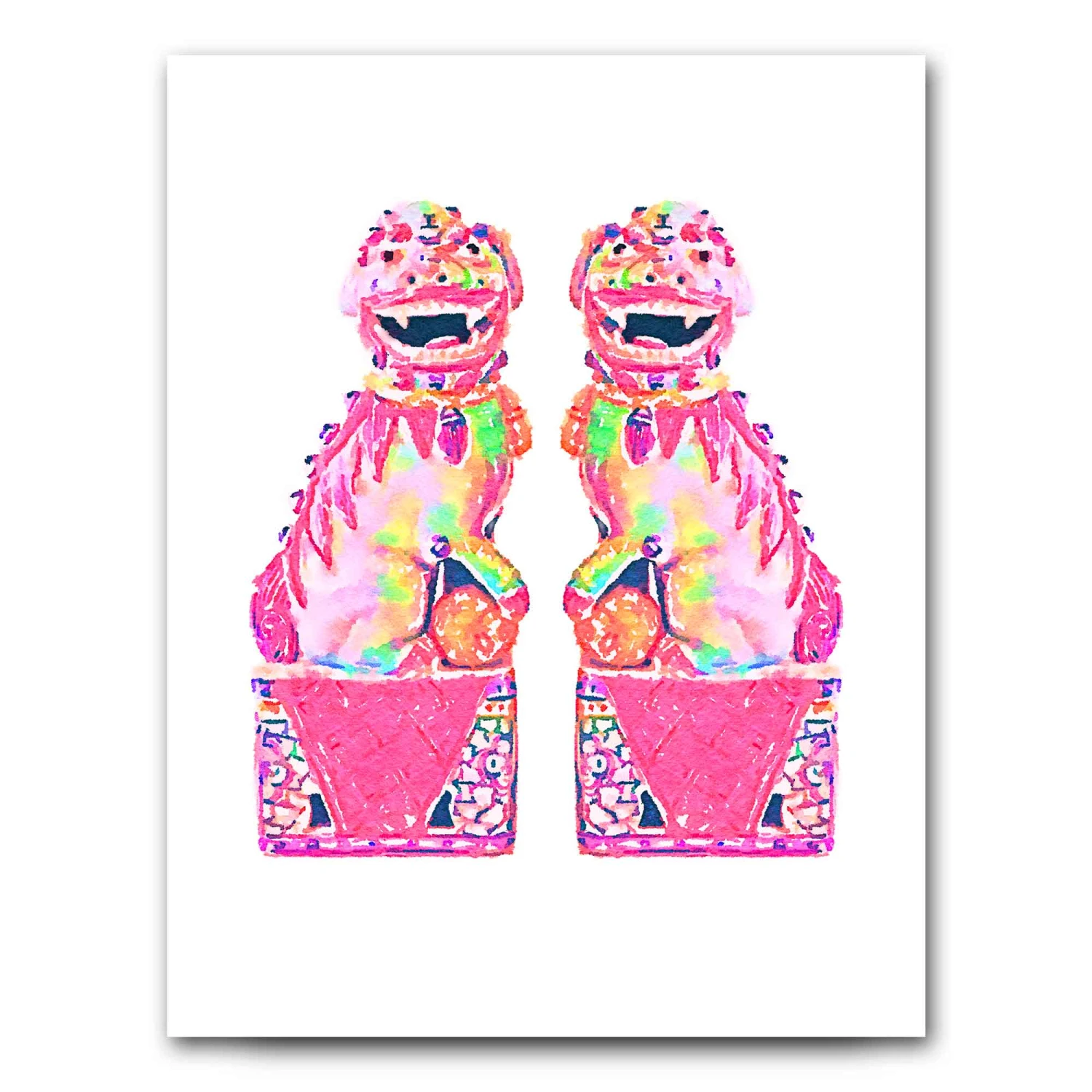 These vivid foos are the perfect dash of Chinoiserie to your space. Art print is available in a variety of sizes & stocks.