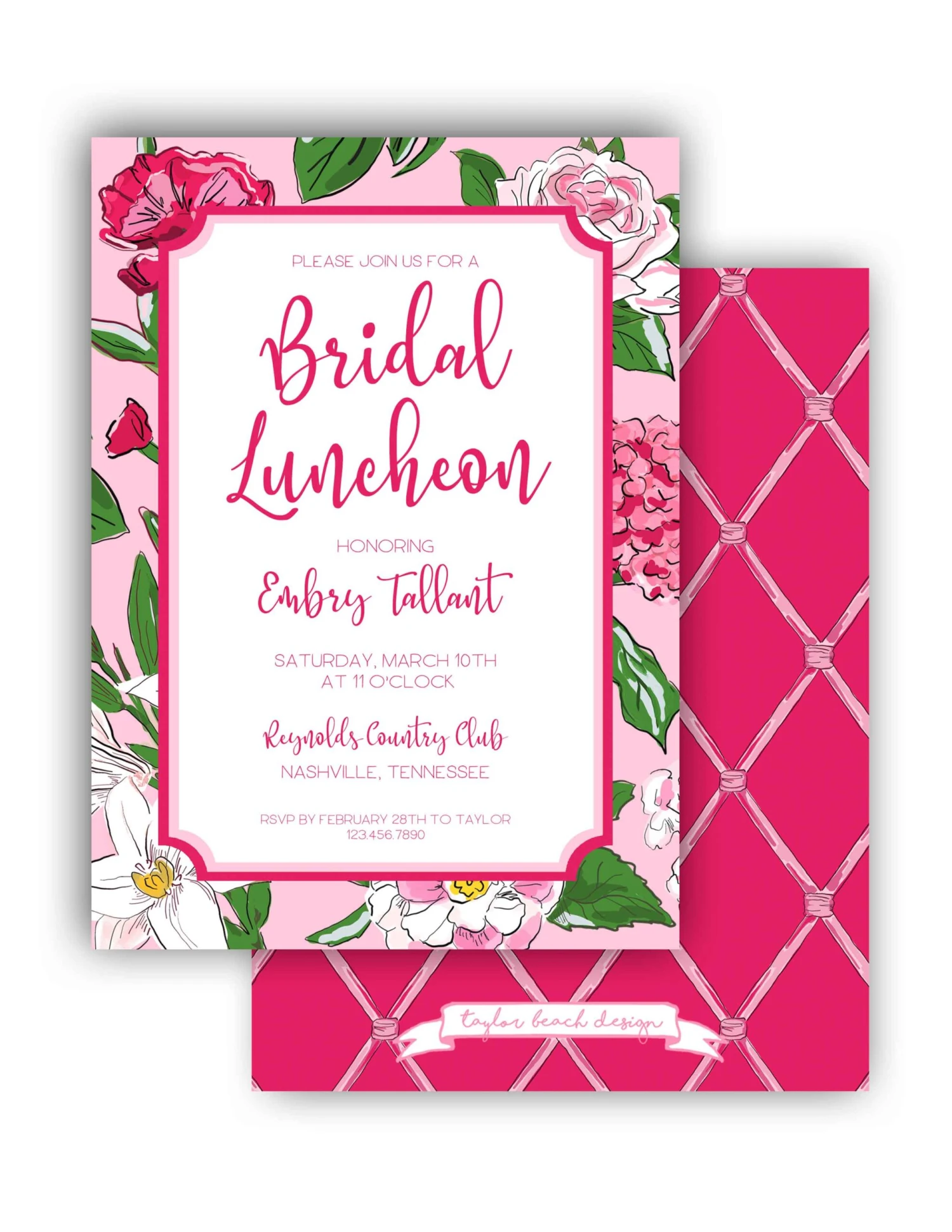 5″x7″ matte finish, flat cards with white envelopes. Backside of invitation is as shown. Great for a Valentine or Galentine dinner, Bridal shower, or year round festivities!