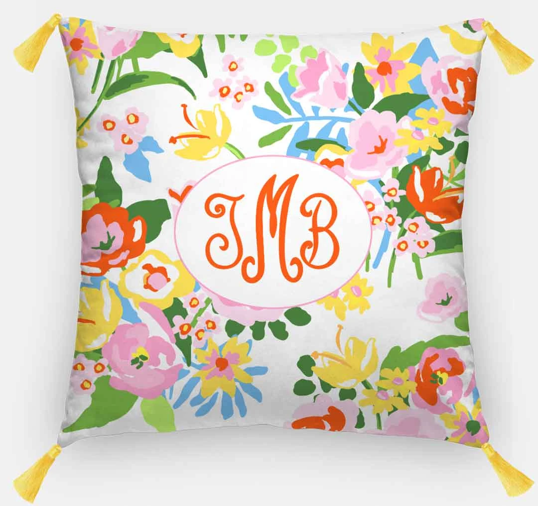 Design your bedroom around this fabulous cotton twill floral pillow.  Pillow measures 26″x26″, has a bottom zipper and comes with a removable feather down insert. Â