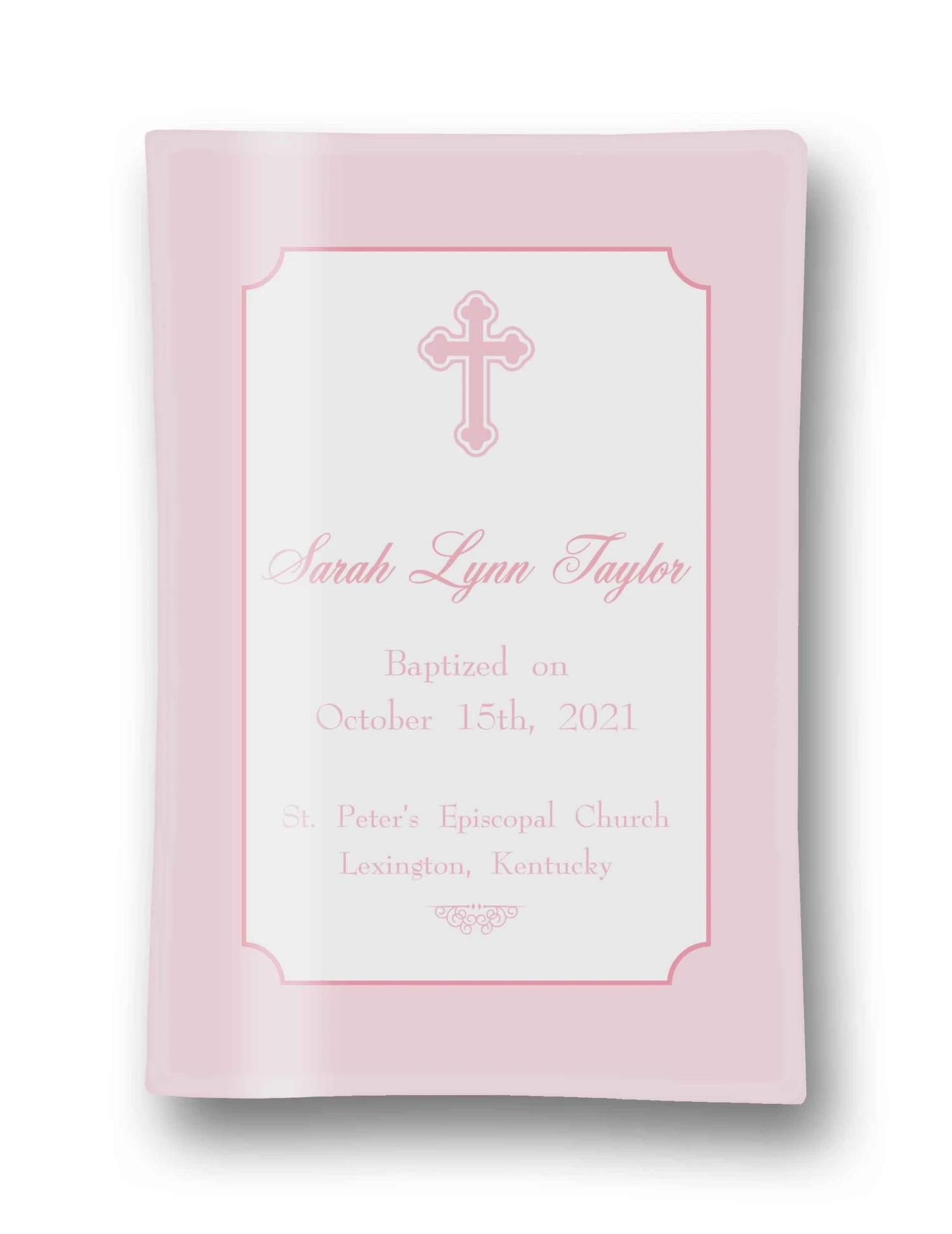 This glass trinket dish is the perfect accessory for your desk, vanity or cocktail table. Tray measures 5″x7″ and is made of molded, fused glass. Dish is food safe, but may not be used in the dishwasher or microwave.