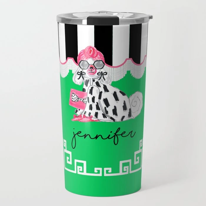 This personalized Glamour Staffie travel tumbler is the perfect accessory to get you going each morning.Ā Ā 20 oz double wall, lightweight stainless steel travel mug with clear plastic insulated lid.Ā Ā Measures 3.5ā diameter x 6.75ā.