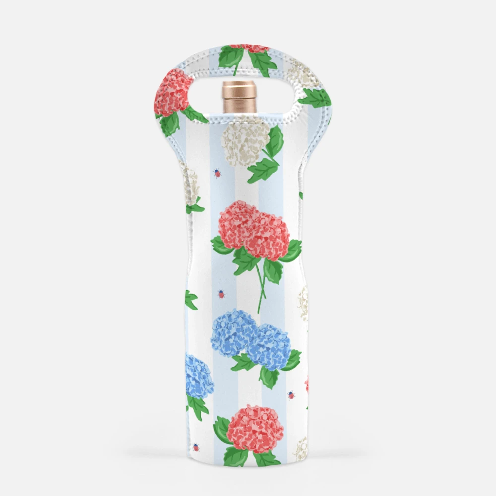 The ultimate party accessory, this wine carrier with cork screw is made of 100% Neoprene material and fits (1) 750ml wine bottle. Dresses up any bar cart!