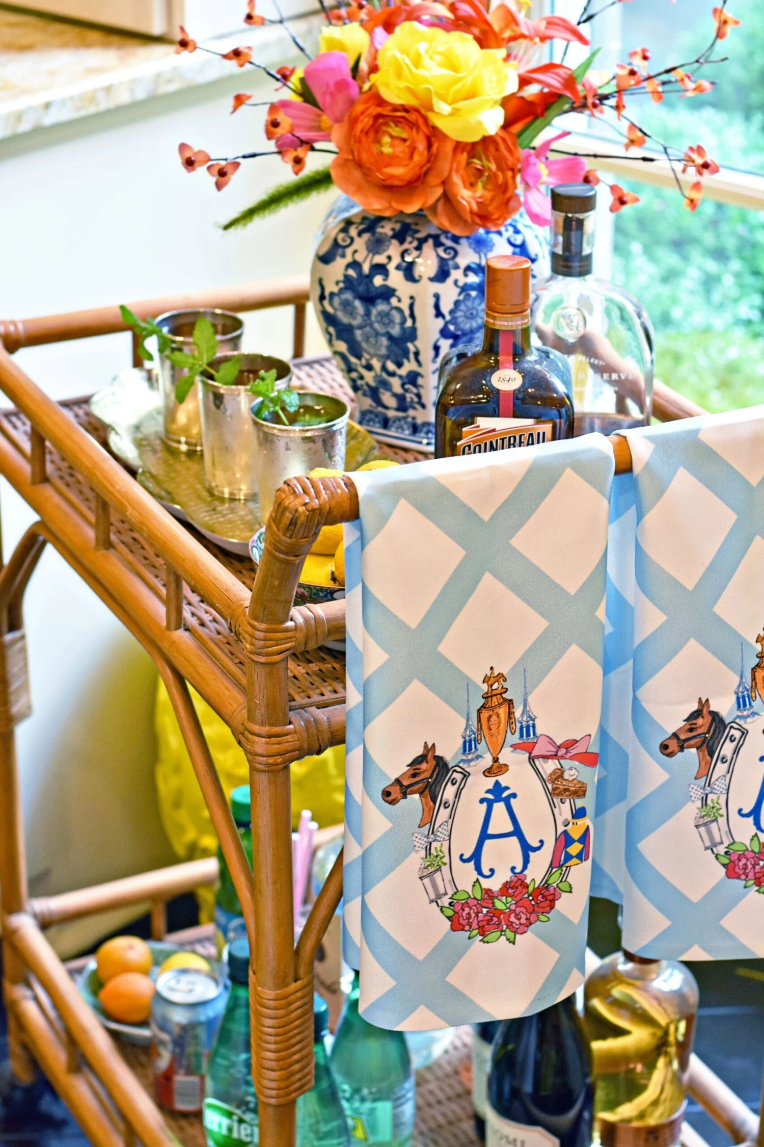 Set of (2) Kentucky Derby-themed cotton twill tea towels. Tea towels measure 18″x30″ and are hemmed along all (4) sides. Please provide personalization information at check out. One complimentary proof will be sent for review / approval prior to fabrication.