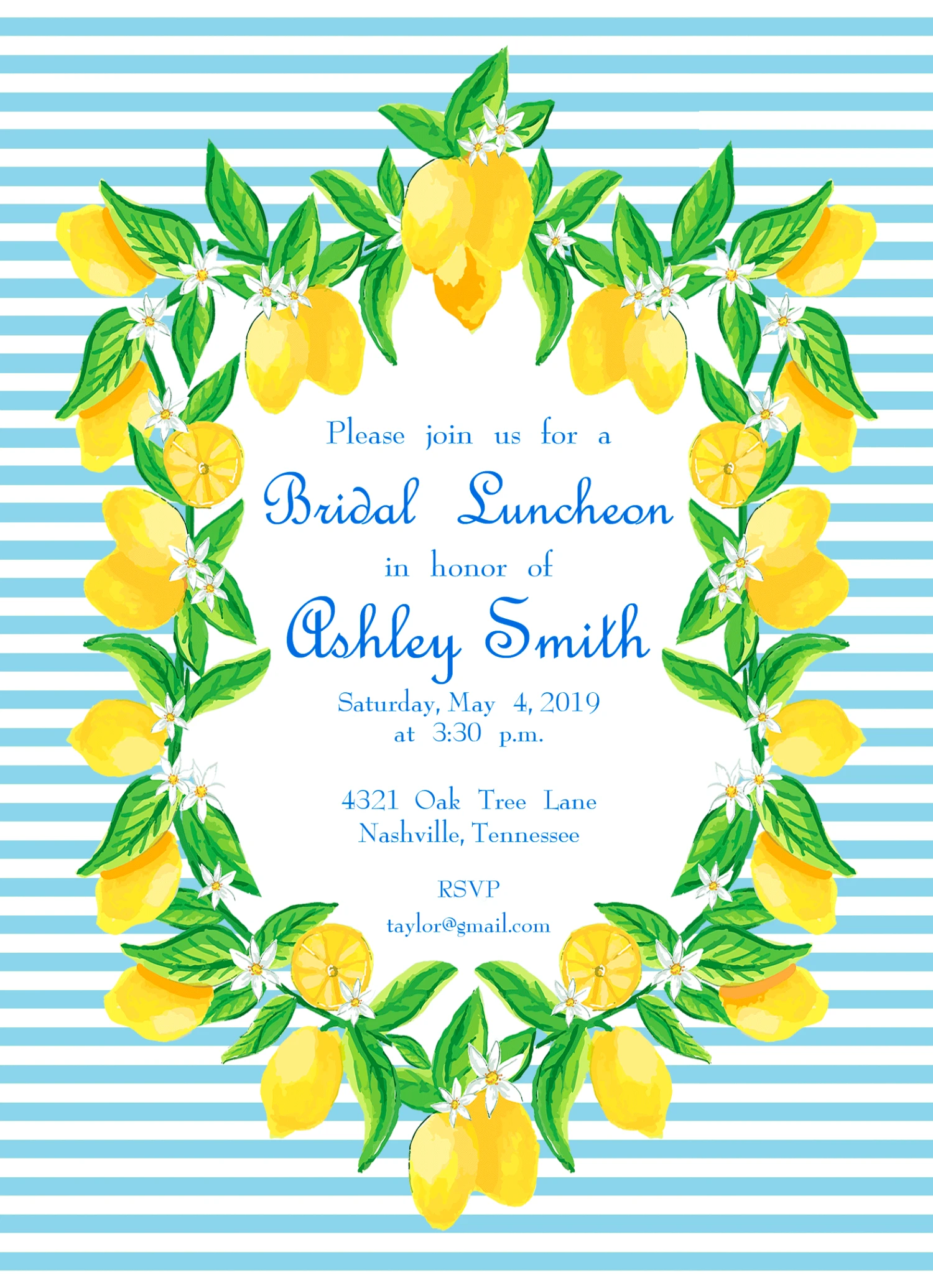 Make your event memorable with these charming Lemon Crest invitations. 5″x7″ matte finish, flat cards with white envelopes. Backside of invitation is white. Wording may be adjusted to your liking. Please provide verbiage in personalization box.