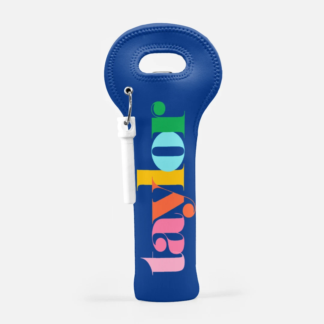 The ultimate party accessory, this wine carrier with cork screw is made of 100% Neoprene material and fits (1) 750ml wine bottle. Dresses up any bar cart!
