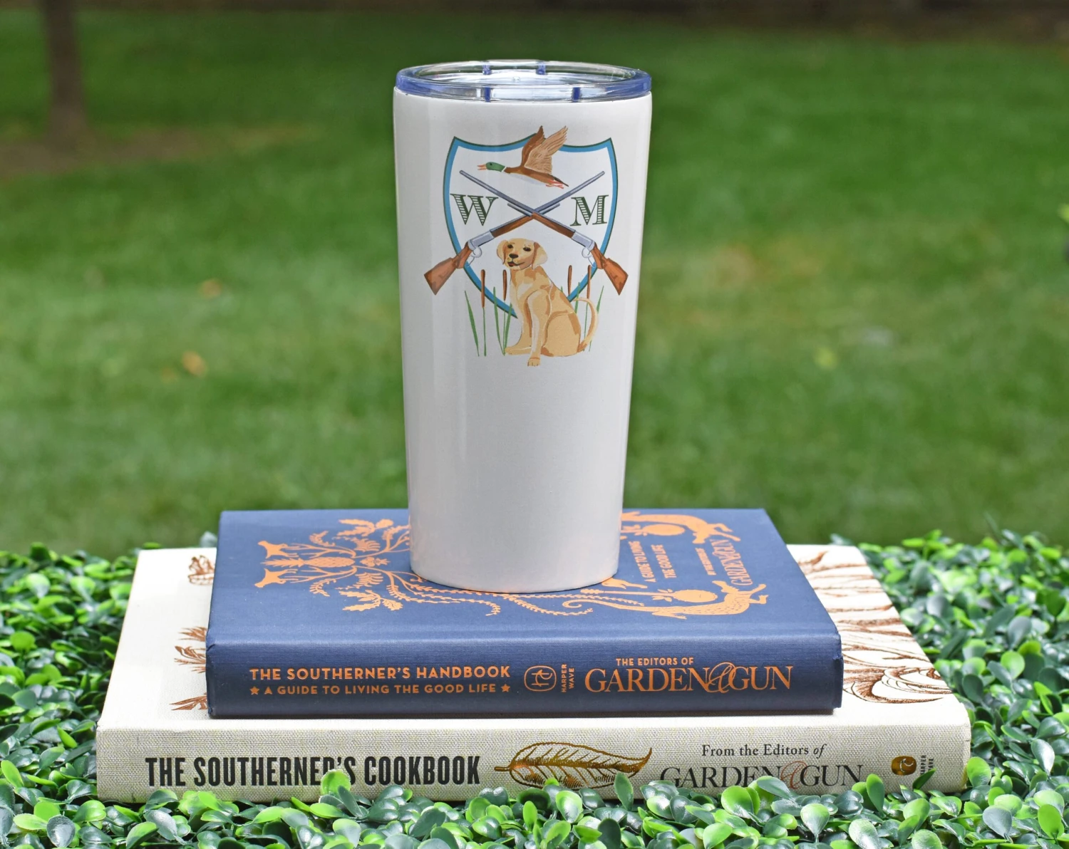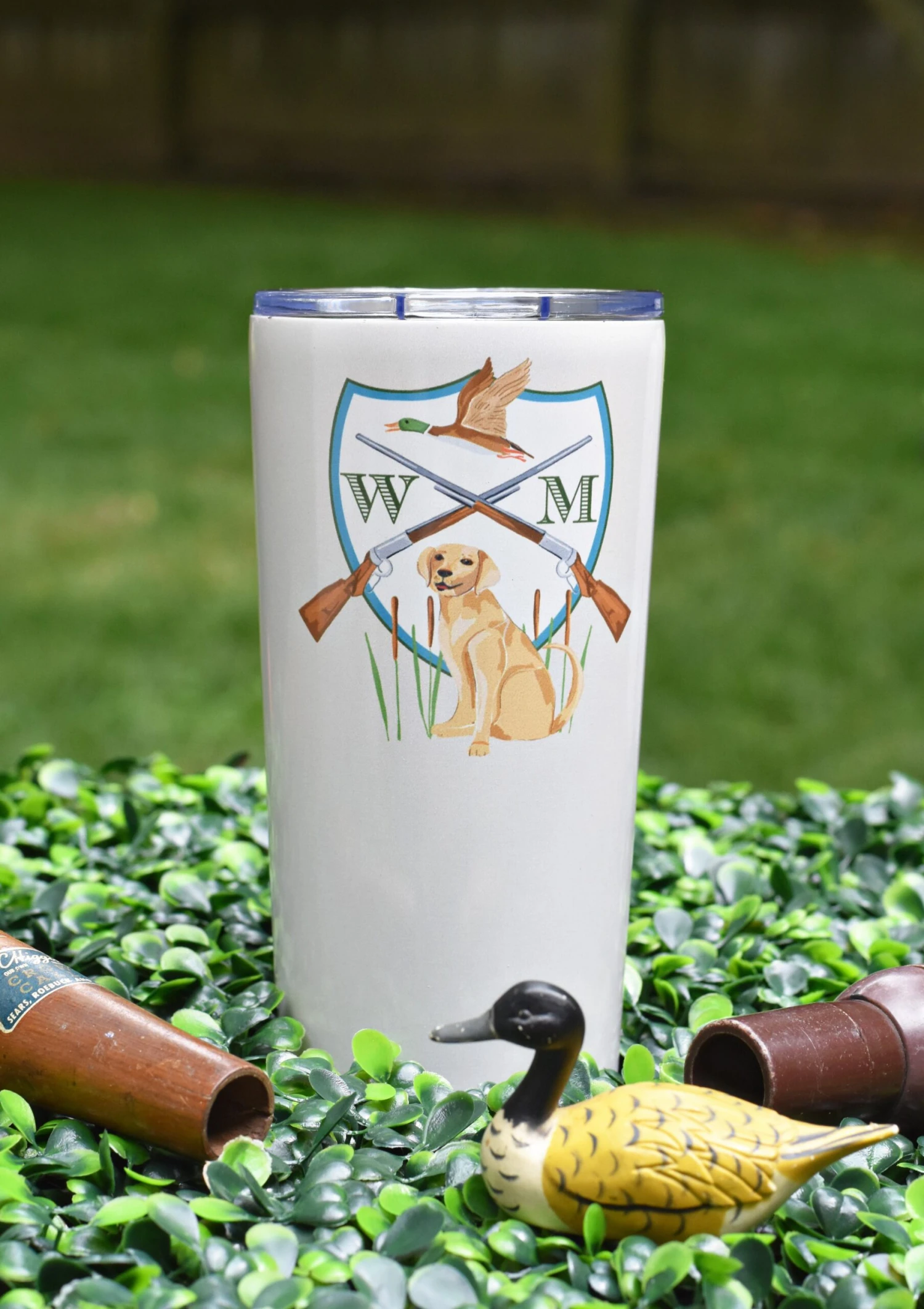 The perfect accessory for Dad! This personalized travel tumbler is a 20 oz double wall, lightweight stainless steel travel mug with clear plastic insulated lid. Measures 3.5” diameter x 6.75”.