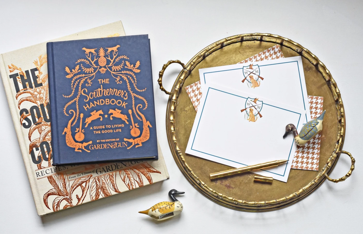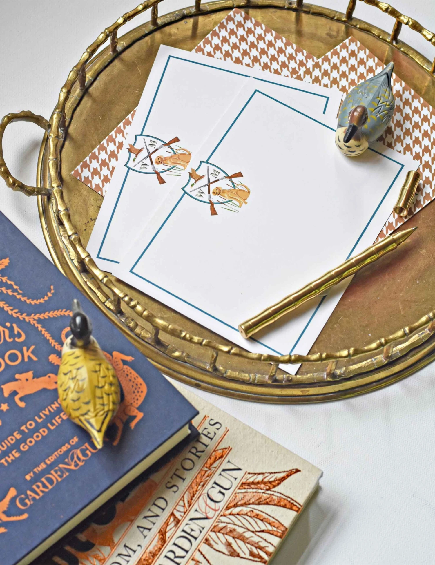 Handsome Duck Hunting Custom Crest stationery. Set of (10) matte 5″ x 7″ flat note cards with 2-letter monogram crest.Â