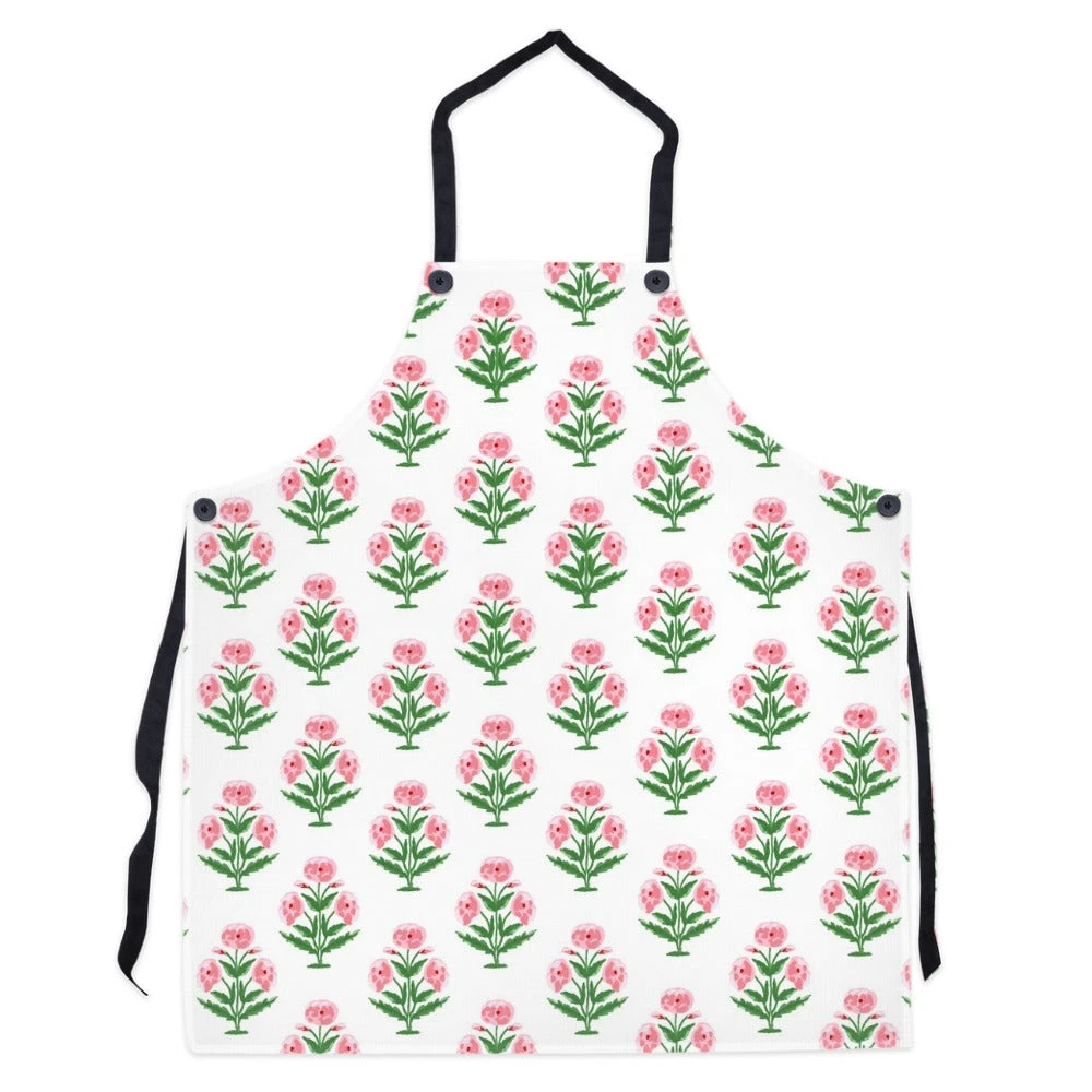 The perfect kitchen accessory! This apron is made of polytwill and measures 29.5″x32″. Black summary details with adjustable neck & waist ties. Â