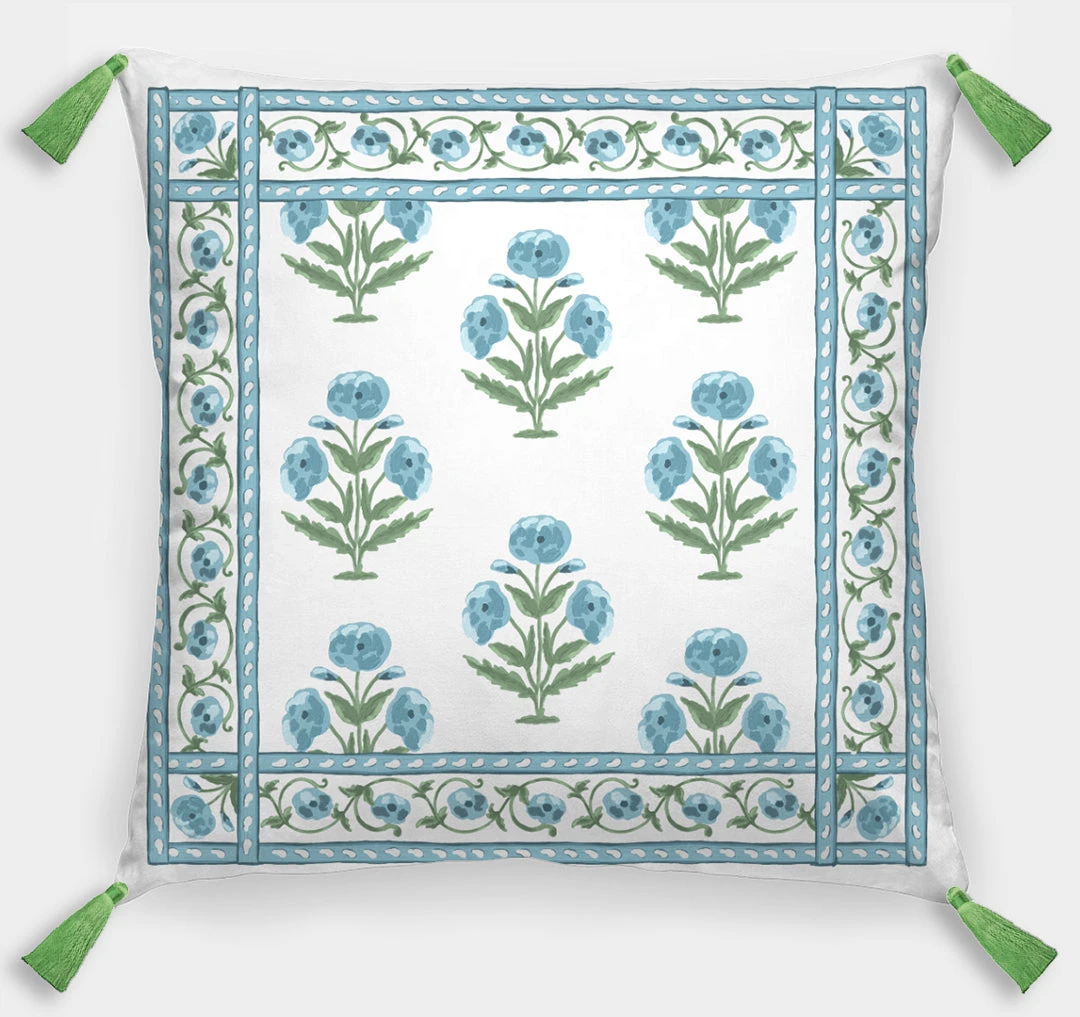 Design your bedroom around this fabulous cotton twill floral pillow.  Pillow measures 26″x26″, has a bottom zipper and comes with a removable feather down insert. Â