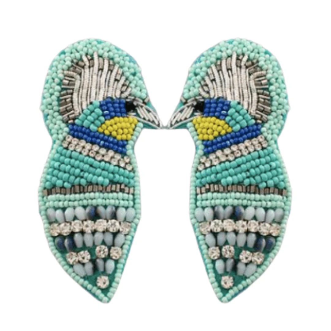 Glam up with these fabulous multi bead peacock statement earrings. These earrings measure 3 1/2″L.