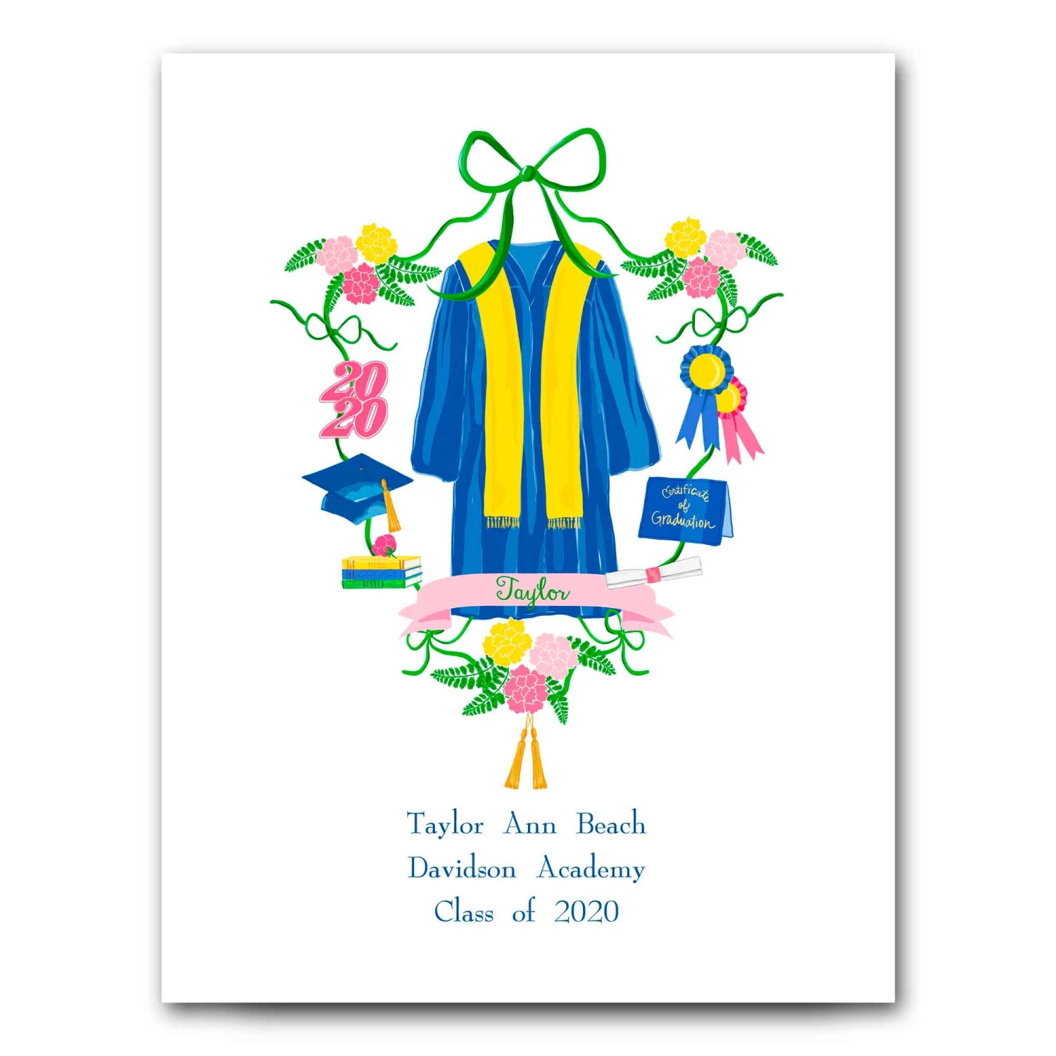 This custom graduation crest fine art print is a lovely gift for a special senior celebrating their big milestone. Printed on matte, slightly textured cardstock. Frame shown is for reference only; NOT included. Available in the below sizes: