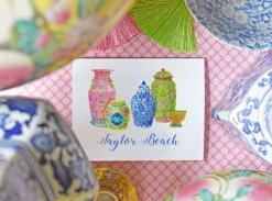 Blue Willow Style Personalized Chinoiserie Folded Note Cards