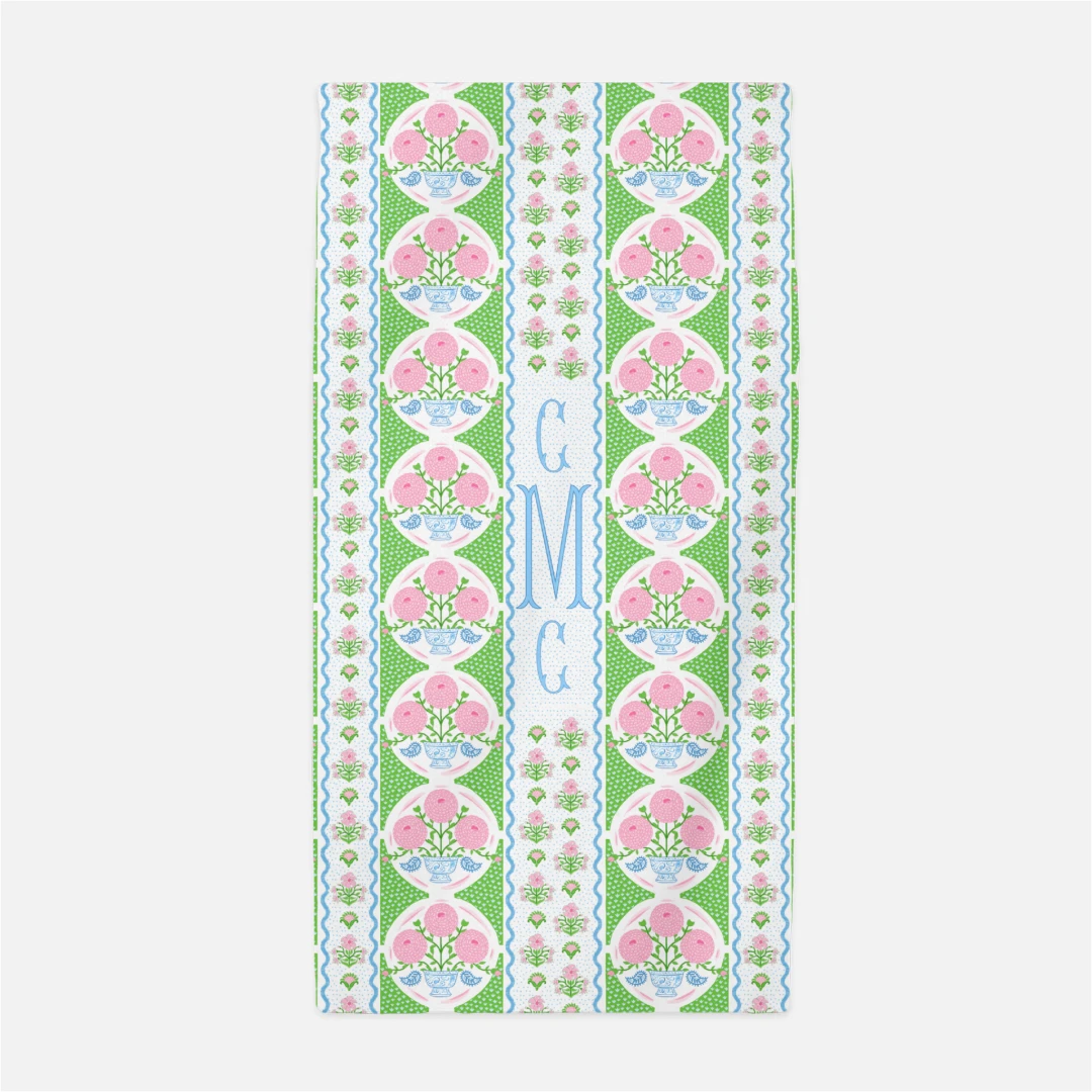 Mark your loungers at the pool with these vibrant, personalized beach towels. Super plush 5.5 oz. sheared microfiber 100% polyester face and reverses to 100% cotton terry loops. Towel measures 30″ x 60″. Design is on front face of towel only. White backside.