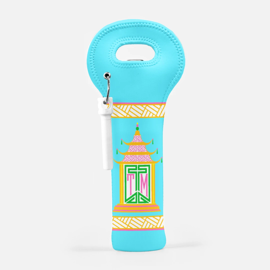 Whether it be a hostess gift or carrying your wine to the boat, this personalized Royal Pagoda wine carrier with cork screw is sure to make an impression. Made of 100% Neoprene material, this bag fits (1) 750ml wine bottle.