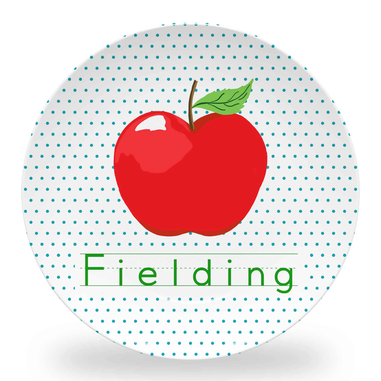 Serve up an afternoon snack on this personalized plate. Plate measures 10″ dia. and is dishwasher safe, non-toxic, BPA free. Do not use in microwave.