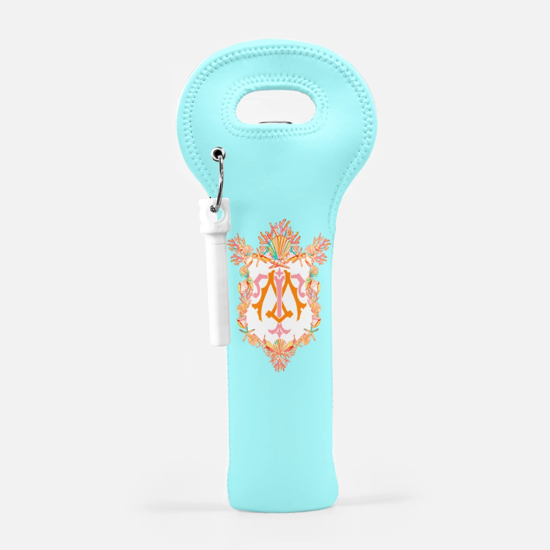 Carry your wine to the beach in this stylish Seashell Crest wine carrier. Made of 100% Neoprene material, this bag fits (1) 750ml wine bottle.