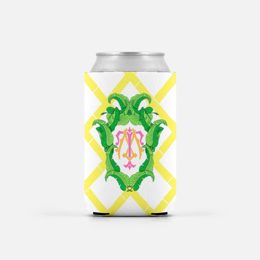 Keep your beverage frosty in these fabulous Banana Leaf Crest personalized can coolers. Can coolers are made of neoprene with the design showing up on both sides. These measure 4.75″ x 4.75″ and come in a set of 2.