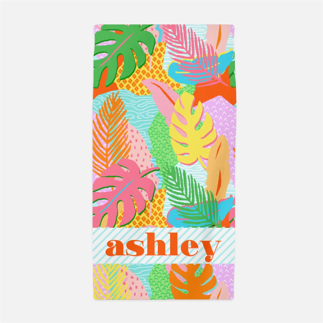 Mark your loungers at the pool with these vibrant, personalized beach towels. Super plush 5.5 oz. sheared microfiber 100% polyester face and reverses to 100% cotton terry loops. Towel measures 30″ x 60″. Design is on front face of towel only. Â